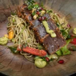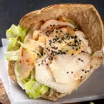 With coriander lime hummus, sesame