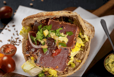 Tender beef shawarma pita bursting with bold spices.
